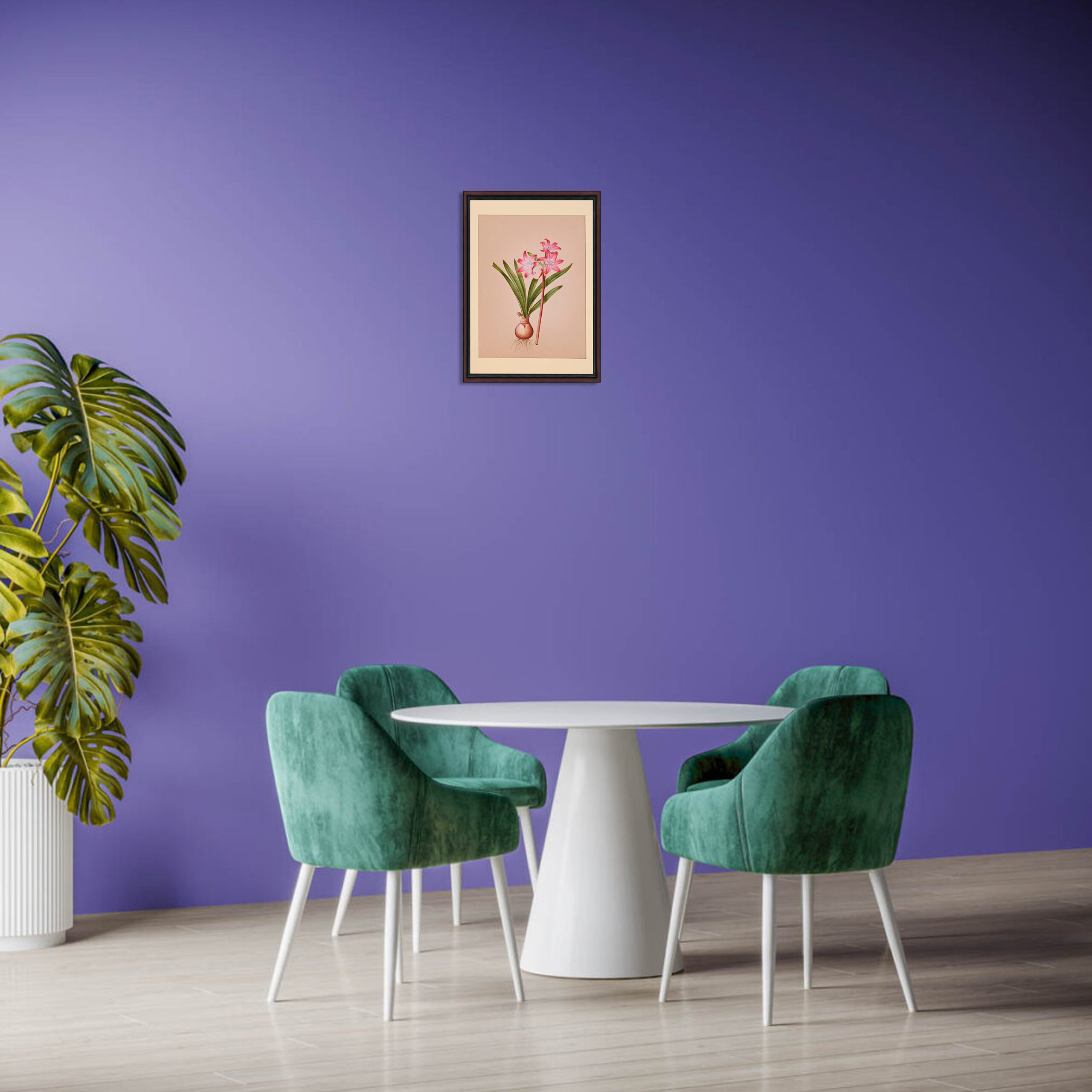 As a piece of luxury decor, this botanical painting adds a touch of sophistication to any space. Whether displayed in a living room, study, or bedroom, it serves as a focal point, drawing the eye with its vibrant colors and fine details. The Pink Amaryllis, with its graceful curves and bold colors, symbolizes femininity and strength, making it an ideal addition to spaces designed for relaxation and reflection.